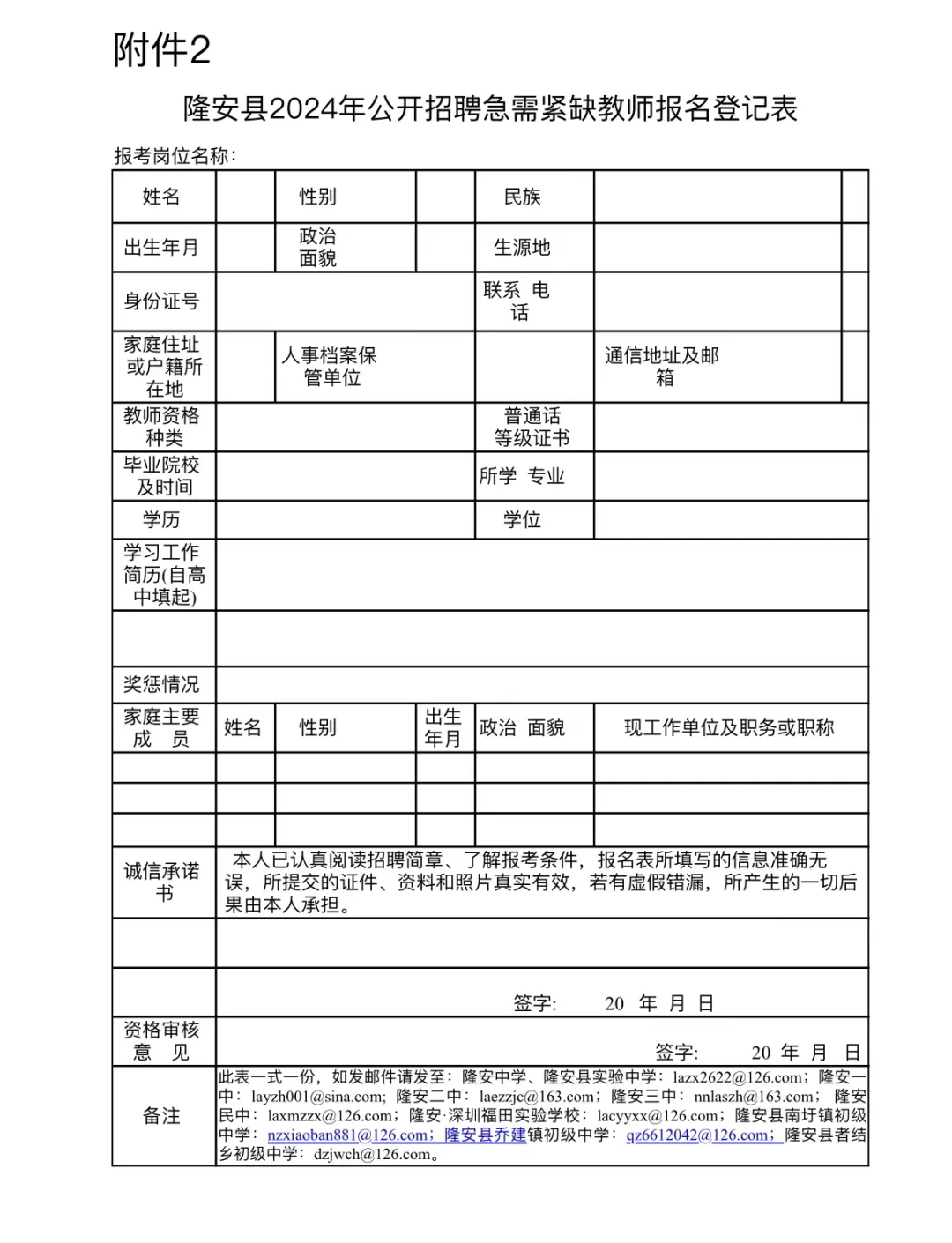 (1)“隆安縣2024年公開招聘急需緊缺教師報(bào)名登記表”電子版??傻卿洀V西南寧市人力資源和社會(huì)保障局網(wǎng)站、廣西南寧市隆安縣人民政府門戶網(wǎng)站、隆安縣民族中學(xué)微信公眾號(hào)下載。