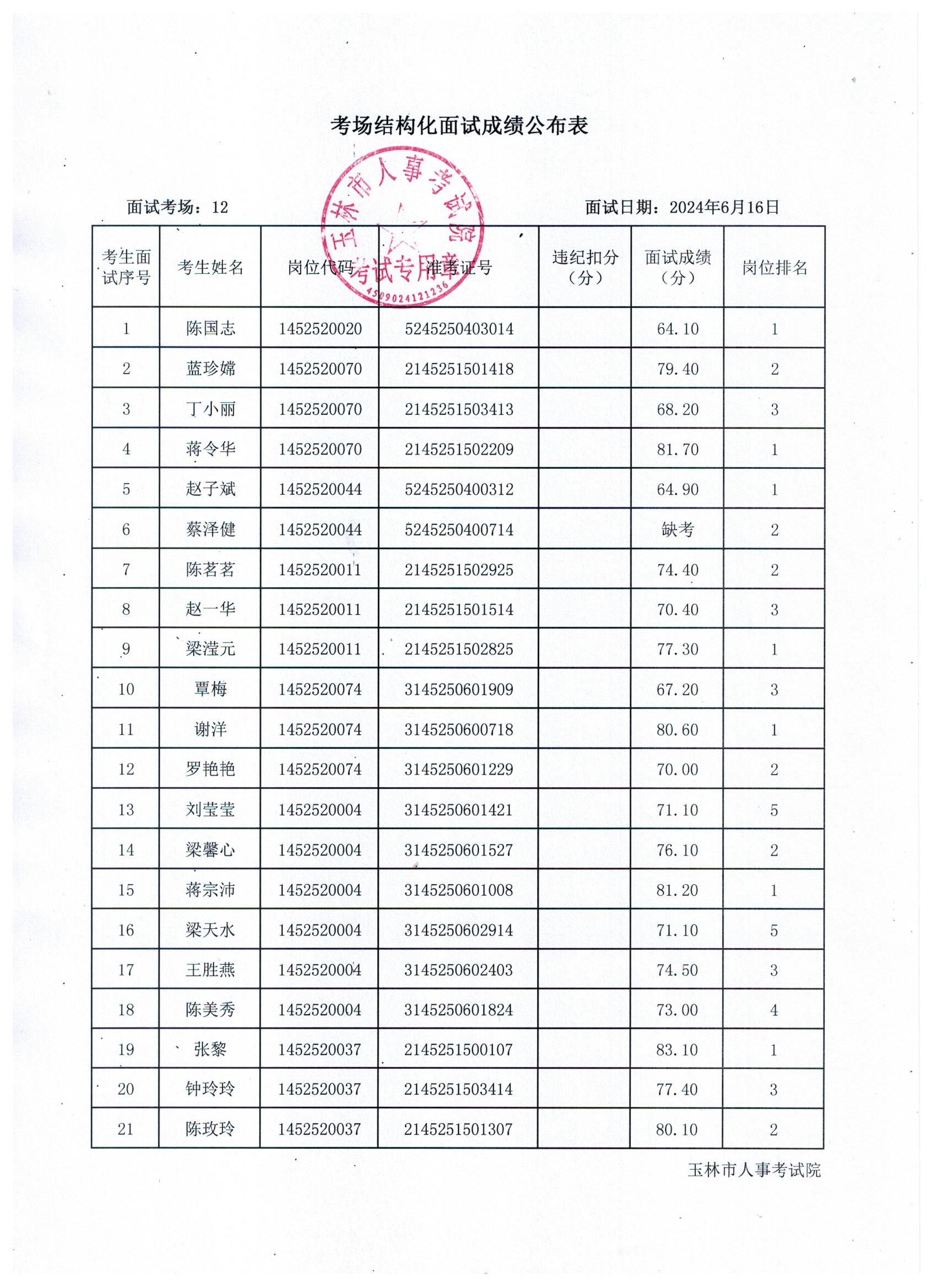 原文標(biāo)題:2024年玉林市直(含玉州區(qū)、福綿區(qū)、玉東新區(qū))事業(yè)單位公開(kāi)招聘人員面試成績(jī)公布(6月16日)