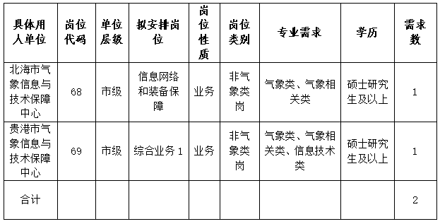 根據(jù)《氣象部門事業(yè)單位公開招聘人員管理辦法》《廣西氣象部門2025年度事業(yè)單位公開招聘工作方案》有關(guān)要求,廣西氣象部門增加招聘2025年應(yīng)屆畢業(yè)生筆試崗位(即非氣象類崗位)2個(gè)。具體事項(xiàng)公告如下: