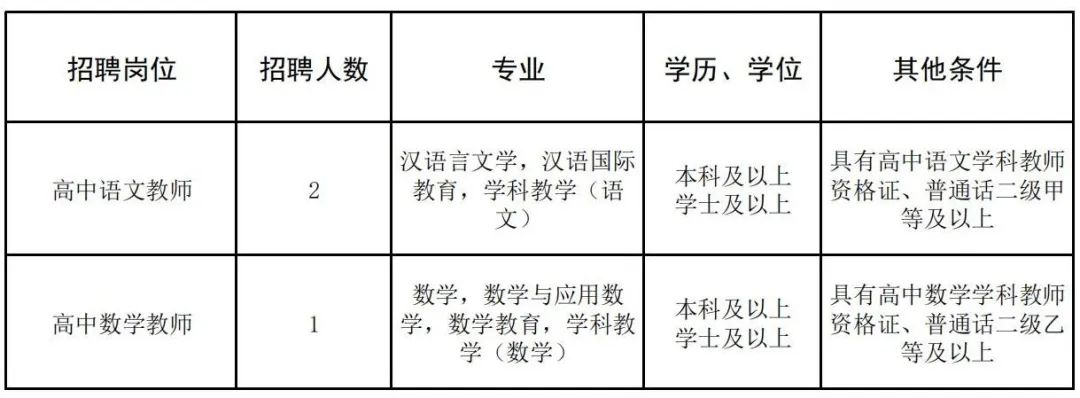 根據(jù)發(fā)展需要,學(xué)校擬招聘高中語文、高中數(shù)學(xué)頂崗教師共3人,具體招聘信息如下: