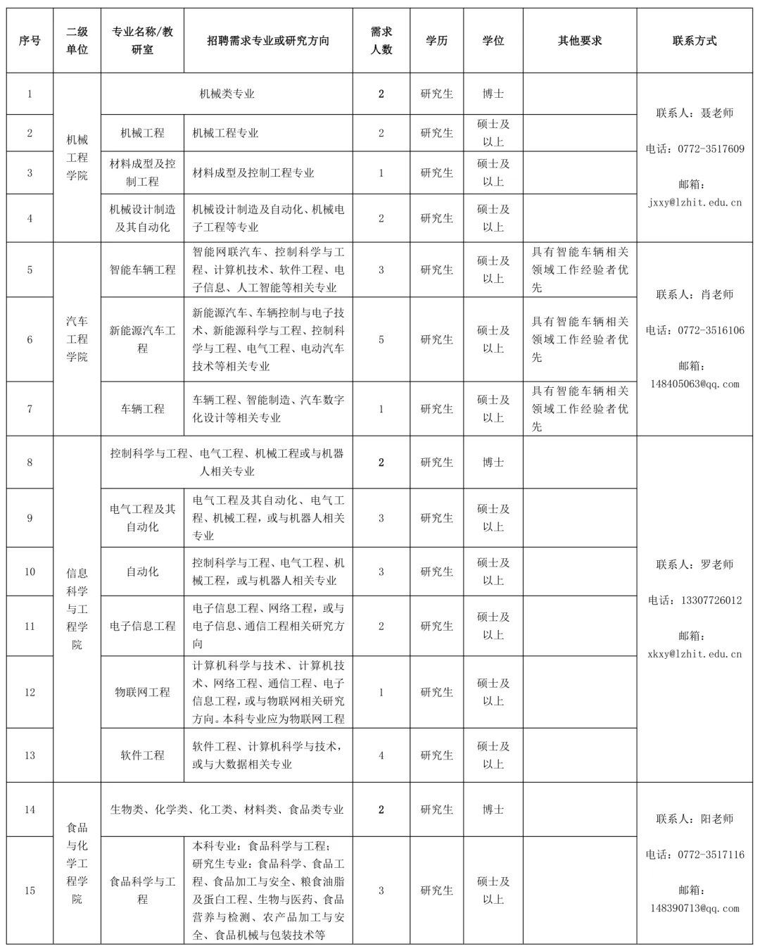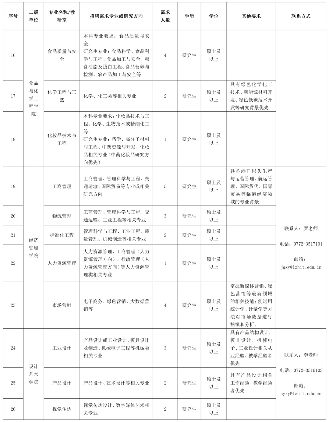 聯(lián)系地址:廣西柳州市魚峰區(qū)新柳大道99號柳州工學院人事處(科教樓1409辦公室)