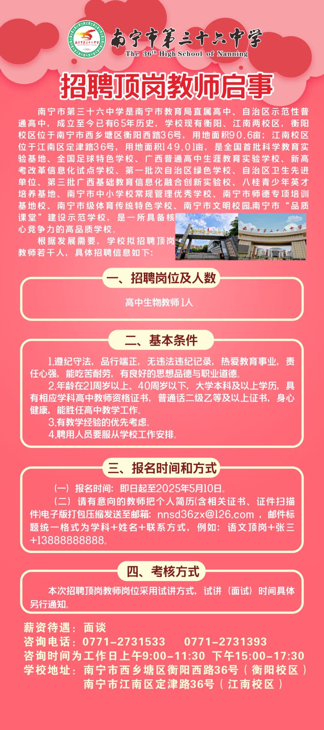 2025年南寧市第三十六中學(xué)招聘頂崗教師啟事