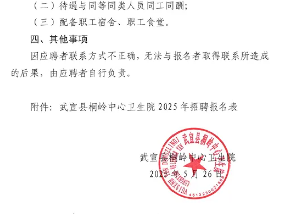 原文標(biāo)題:武宣縣桐嶺中心衛(wèi)生院2025年第一次公開招聘編外聘用人員公告