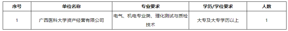 廣西醫(yī)科大學(xué)資產(chǎn)經(jīng)營有限公司(以下簡稱公司)是由廣西醫(yī)科大學(xué)于2011年8月3日獨(dú)資設(shè)立,經(jīng)營管理廣西醫(yī)科大學(xué)經(jīng)營性國有資產(chǎn)和對(duì)外投資的股權(quán)。公司依托學(xué)校和附屬醫(yī)院的資源優(yōu)勢(shì),圍繞醫(yī)藥、養(yǎng)老、醫(yī)學(xué)檢驗(yàn)、大健康項(xiàng)目等領(lǐng)域開展投資與合作,積極探索產(chǎn)學(xué)研協(xié)同發(fā)展。根據(jù)工作需要,現(xiàn)面向社會(huì)公開招聘工勤崗工作人員,具體招聘事宜如下: