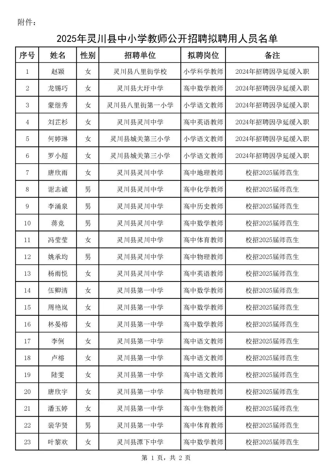 2025年靈川縣中小學(xué)教師公開(kāi)招聘擬聘用人員名單公示