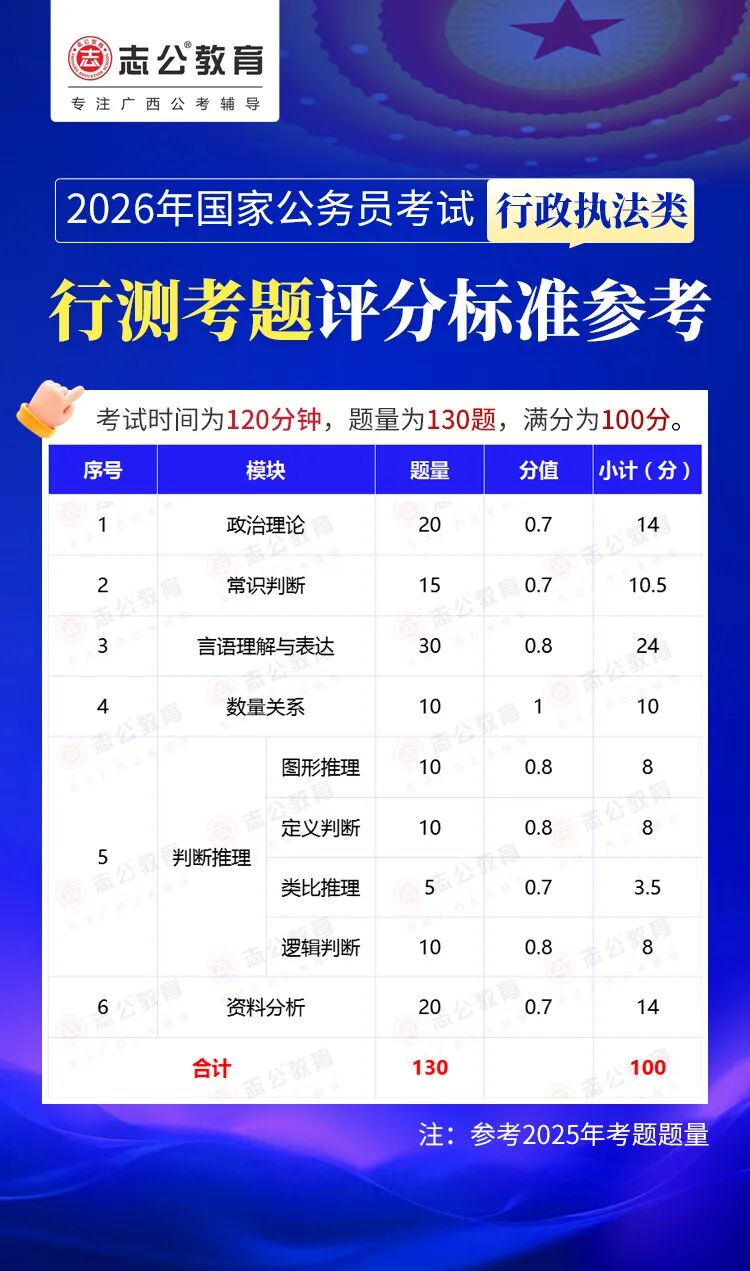 無(wú)論報(bào)名人數(shù)是否會(huì)增加,提升自身實(shí)力才是應(yīng)對(duì)2026年國(guó)考的關(guān)鍵。行測(cè)作為國(guó)考公共科目筆試的核心模塊,不僅分值占比高(通常為 100 分),更是考生之間拉開(kāi)分差的關(guān)鍵戰(zhàn)場(chǎng)。它并非單純考查知識(shí)儲(chǔ)備,而是通過(guò)言語(yǔ)理解、判斷推理、數(shù)量關(guān)系、資料分析、常識(shí)判斷、政治理論六大板塊,綜合評(píng)估考生的信息處理速度、邏輯思維能力、應(yīng)急決策水平等綜合素質(zhì)。