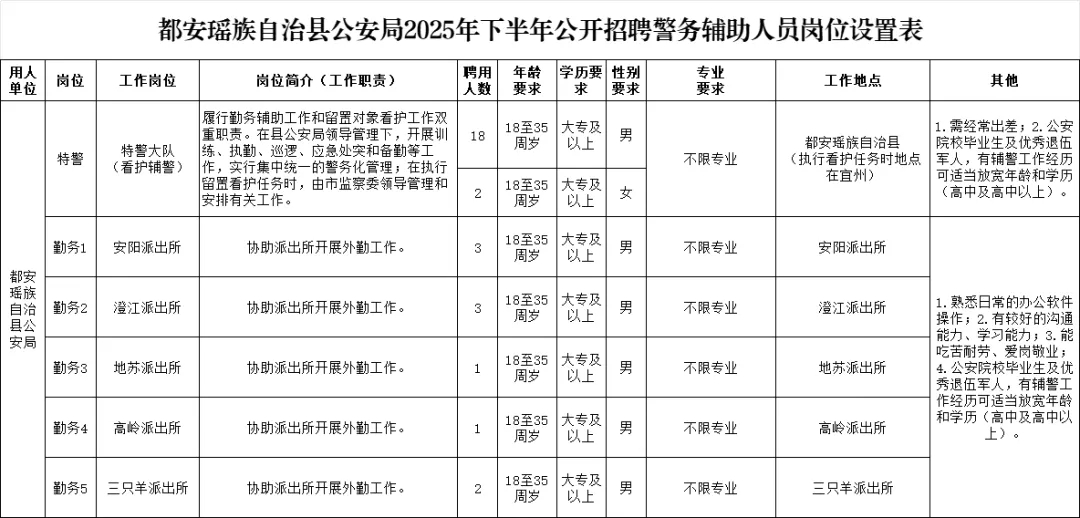 附件1.都安瑤族自治縣公安局2025年下半年公開招聘警務(wù)輔助人員崗位設(shè)置表.xlsx