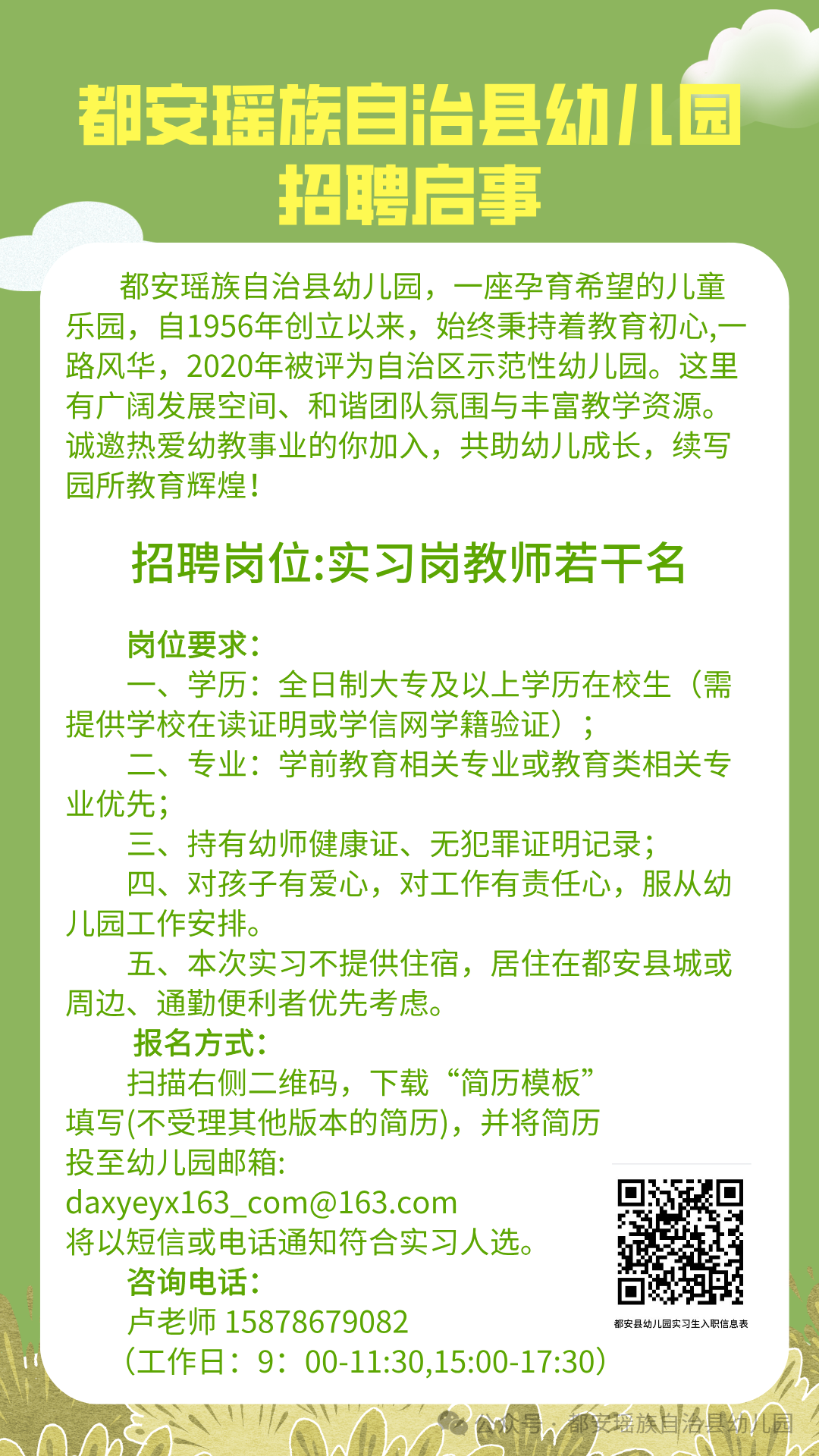 2026年都安瑤族自治縣幼兒園實習(xí)生招聘啟事