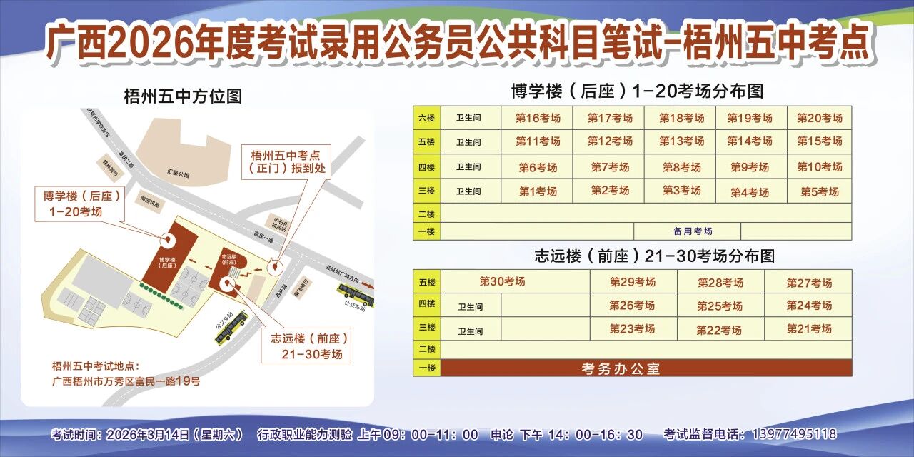 廣西2026年度考試錄用公務(wù)員(選調(diào)生)公共科目筆試梧州考點(diǎn)指引
